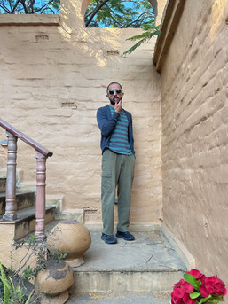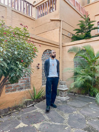 Some of these picks are from my winter capsule that I did pack, but I've also made a few fresh picks to adapt while here—a grey cardigan from Esprit, a plain round neck tee from March Tee, a light blue scarf, and my purple kurta from Nicobar.