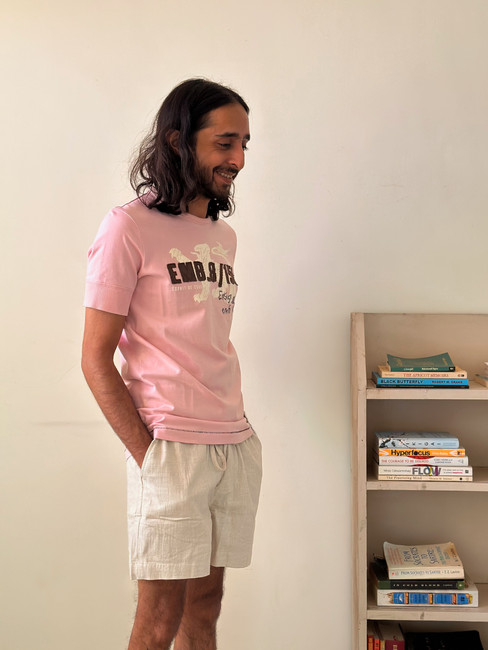 The next step was to add summer staples including breathable items in linen and cotton (such as the shirt in navy from Bhane and chambray trousers from American Apparel). It also felt particularly nice to include some items (graphic tees from Reebok and Esprit) that I have had in my wardrobe since I was a teen. Wearing them again has felt like a trip down memory lane. As the capsule began taking shape, I noticed that it lacked a diverse color palette and decided to introduce more color. I added a few items in red (Kurta from Nicobar and tee from Kooovs), green (gifted mandala tee), navy, and pink.